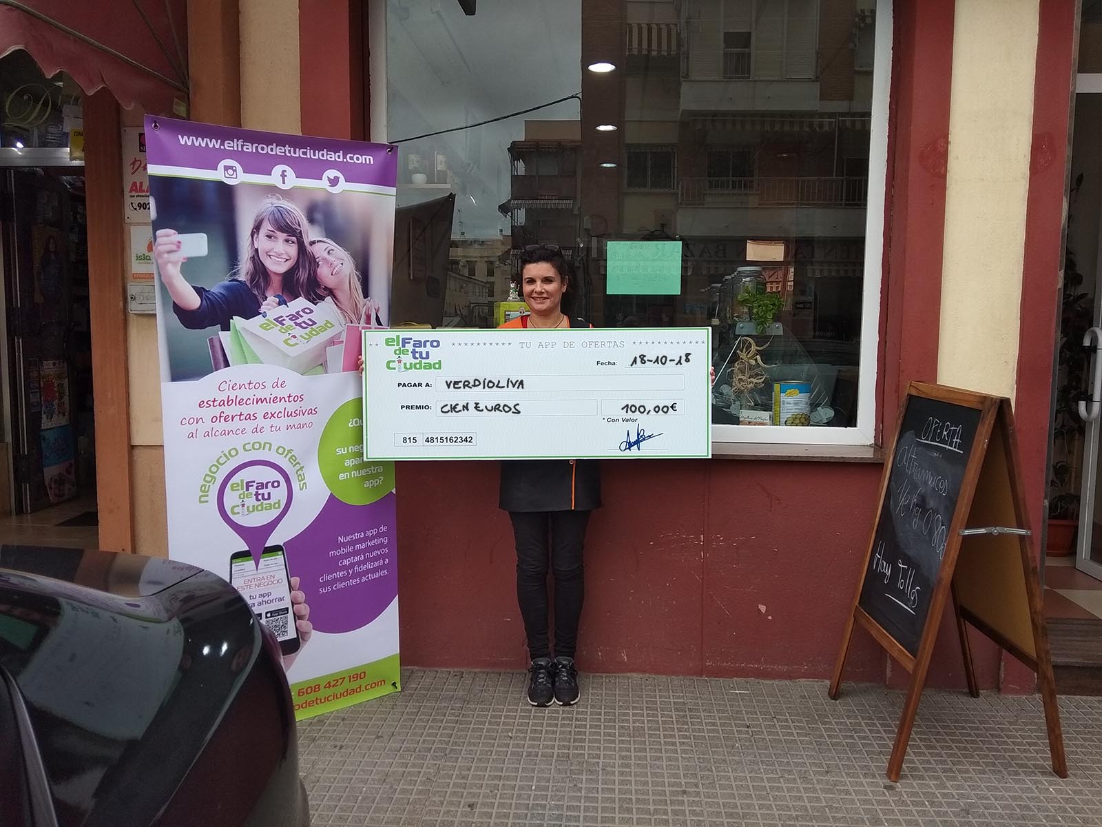 Gema la gerente de Verdioliva declara “estoy muy contenta de tener tantos fans que siguen a mi negocio en El Faro De Tu Ciudad y además los 100€ siempre vienen bien, ahora voy a el siguiente premio de 200€“